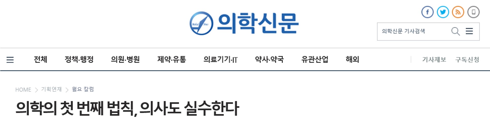 | [의학신문] 의학의 첫 번째 법칙, 의사도 실수한다 (19.04.22) | |||